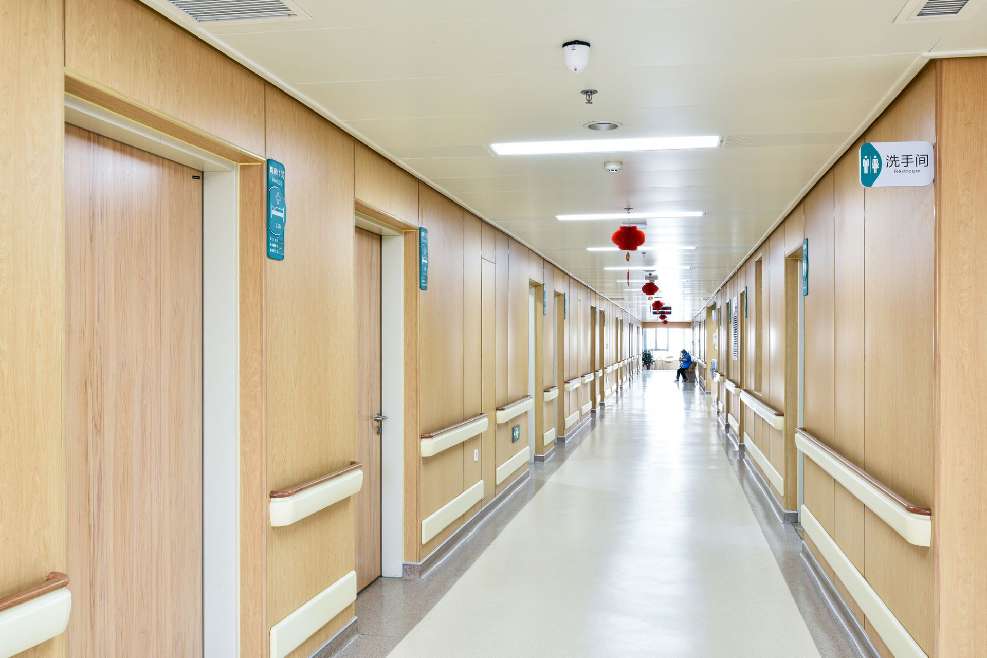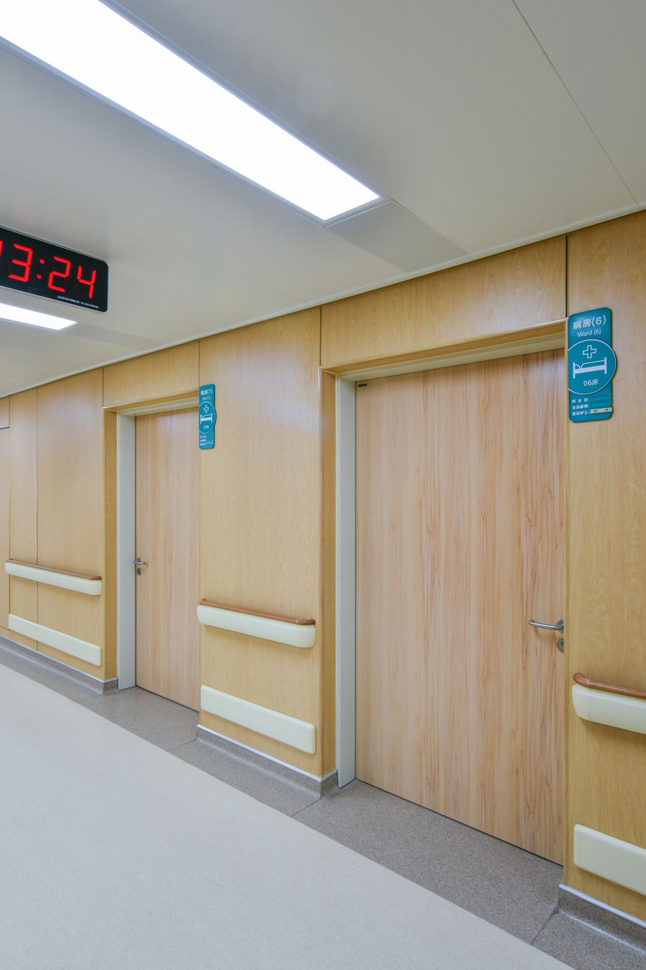 厦门建国安全监控技术有限公司为山东省立妇产医院新建大楼项目中提供医疗环境整体解决方案,其中包含金属木纹病房门、金属诊疗室门、金属木纹双开门等。打造高品质人性化的医疗空间。