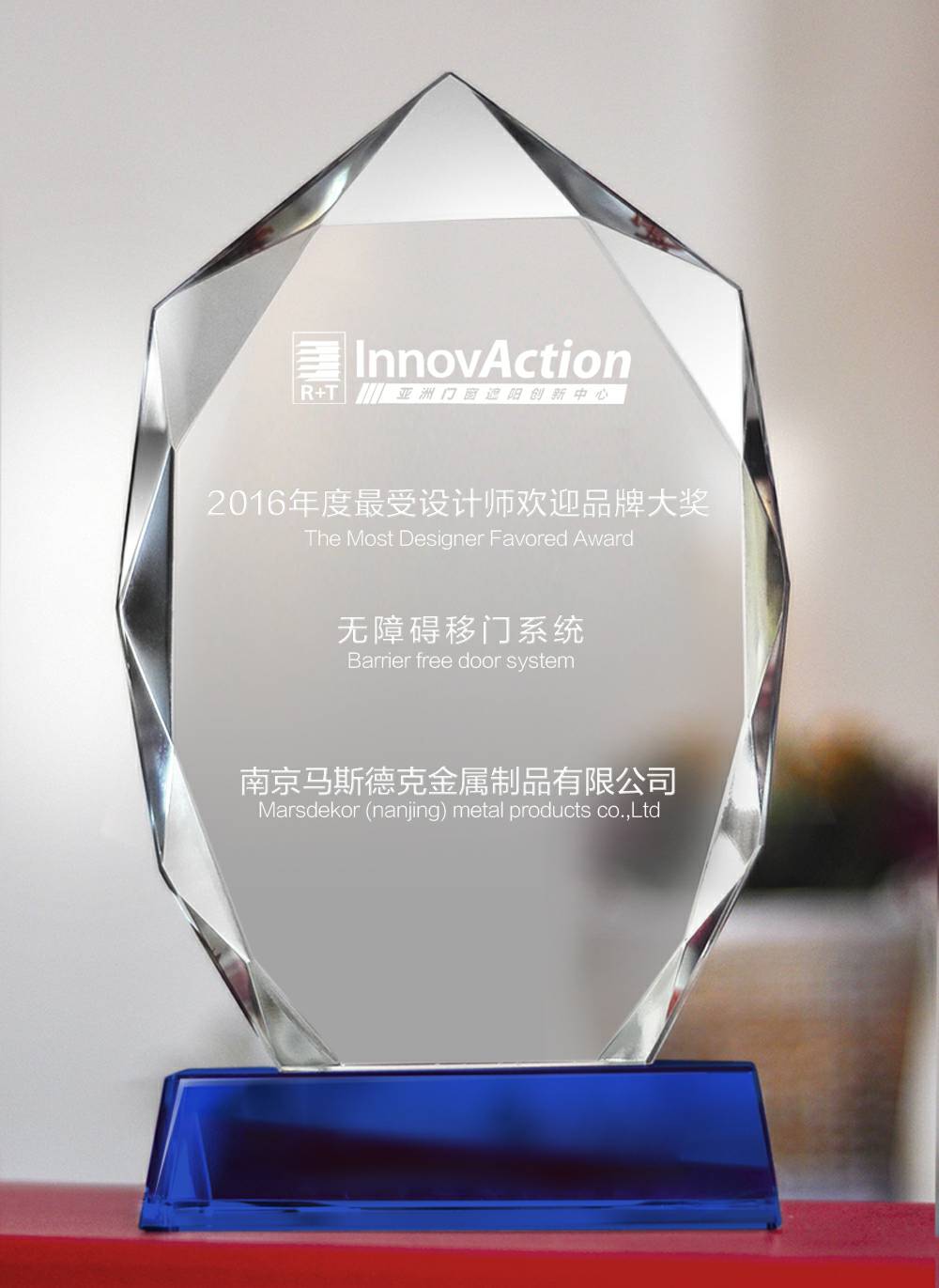 厦门建国安全监控技术有限公司荣获2016R+T ASIA最受设计师欢迎品牌大奖。